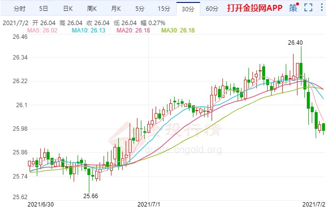 原标题:国际白银多空迎审判 盘整等待触发因素国际白银美盘初走势掉头向下,一度跌破26关口,最终收跌0 45%,报26美元 盎司,今日(7月2...