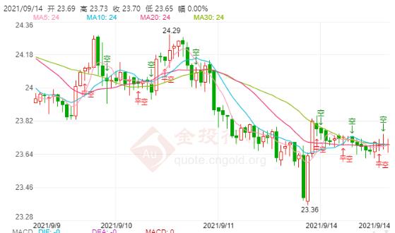 原标题:震荡格局即将打破 国际白银蓄势待发周二(9月14日)本交易日国际白银小幅下跌,今日开盘报23 70美元 盎司,最高触及23 75美元 盎司,最低触及23