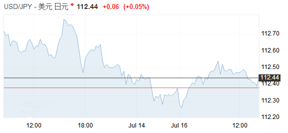 美元兑日元持于112.44,距上周五触及的六个月高点112.79不远。