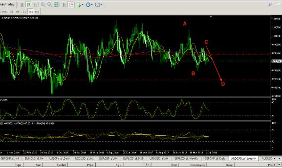 Giles Coghlan表示,他预计澳元兑加元将在中期内进一步走软。从技术图形看,澳元兑美元近几个月也明显处于下图ABCD的模式之中,后市料展开新一轮跌势。