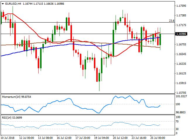 欧元兑美元位于1.1720附近,4小时图显示短期依然偏中性。汇价略高于持平的均线上方,技术指标转升,但位于中性水平,若突破1.1750即将进一步上扬。