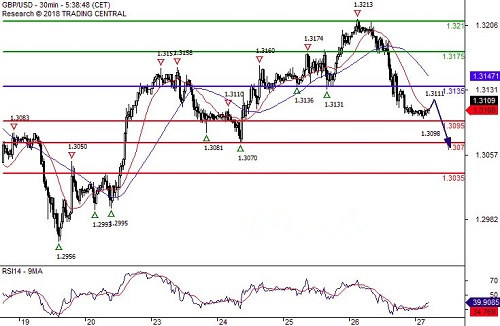 报告指出,若英镑运动至1.3095下方,则可能会触发跌至1.3070水平。
