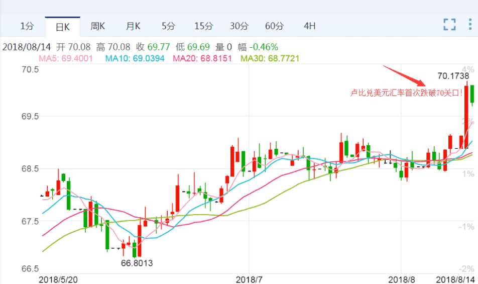 受新兴市场货币暴跌的拖累,北京时间周二(8月14日)亚市午盘,印度卢比兑美元汇率首次跌破70关口,创下2013年9月以来的最差表现!卢比兑美元在前一交易日下跌1.6%。卢比汇率今年下跌近9%,成为亚洲表现最差的货币。