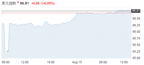 美元指数涨0.09%至96.81,为2017年6月27日触及97.44以来的最高水准。