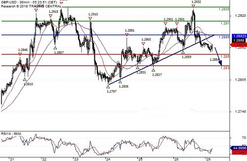 理由:只要1.2885仍是阻力位,预期将重返1.2850水平。
