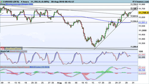 欧元/美元试图击穿周二高位1.1733,并升向关键看涨突破水平1.1746。