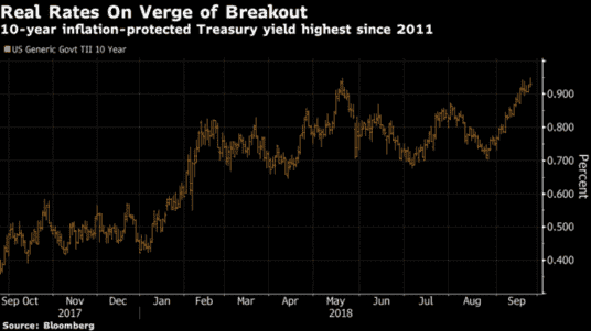 随着美联储周三将联邦基金利率区间上调至2.0%-2.25%,资本竞争变得愈发激烈,且对资产估值带来新测试。周二,美国长期通胀保值国债收益率触及2011年以来的最高水平。实际利率的攀升恐将打击企业预期收益。