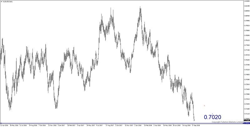 中国经济增长进一步放缓可能会导致澳元/美元跌向0.7020。