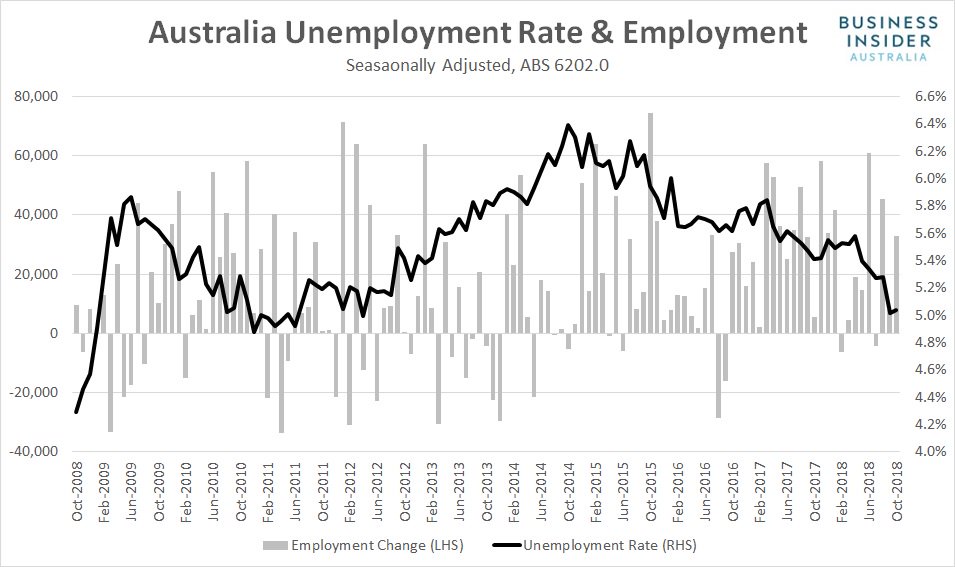 澳洲10月份失业率仍保持在5.0%不变,劳动参与率从9月份的65.5%升至65.6%提供了帮助。经济学家此前预计失业率为5.0%。