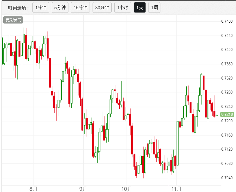 技术上,汇价破败0.73,双顶位于0.7275/80(23.6%回档位),11周高点位于0.7338以及200日均线0.7421(38.2%回档位)均构成阻力。不过若跌破1日均线0.7216将打开跌向近期底部0.7164和9月10日低点0.7085的大门。