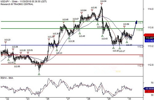 理由:在113.20附近的底部支撑形成,短期内走势有望稳定。