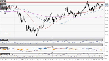 最新公布的FOMC公布的11月会议纪要显示,美联储官员在最近一次会议上认为很快升息将受到保障,但也担忧贸易紧张和企业债务对经济增长产生负面影响。纪要出炉后,12月升息预期降温,但概率依然超过八成。美元/日元波澜不惊,整体波动相对较为平静。
