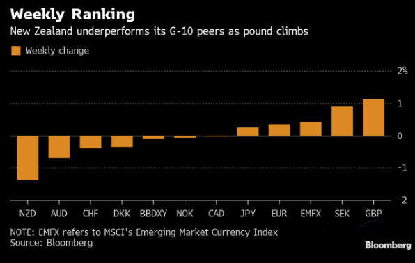 彭博表示,纽元本周预计将成为兑美元汇率中表现最差的G10货币。