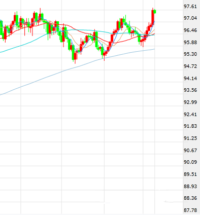 一旦有效突破97.70,料将打开更为广阔的上涨空间,初步目标为98.0。如果短线回落,下方支撑关注97.40以及97.20等水平。