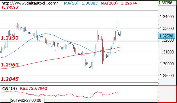 英镑/美元:英国国会已经排除了“无协议”脱欧的风险,这令汇价触及1.3380年内新高,目前涨势有望延续,目标看向1.3450阻力区域。