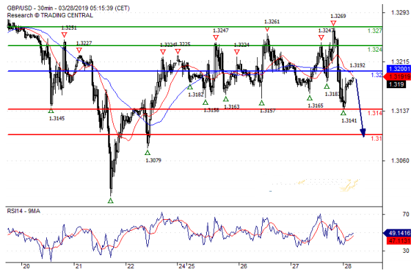 交易策略:在1.3200下方保持看空,目标位依次看向1.3140以及1.3100。或者,在1.3200上方看涨,目标位分别看向1.3240以及1.3270。