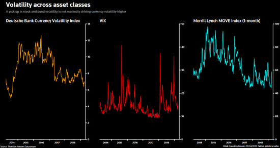 英镑波动率因英退不确定性而升高,土耳其里拉也剧烈波动,但这些都是特殊情况。