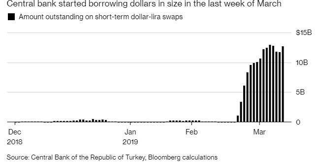 在外汇掉期推出后的三周里,土耳其净储备仅增加了200多亿里拉,按今天的定价约为35亿美元。央行在这段时间的借款总额略低于130亿美元,假设借款金额以储备的形式反映出来,那么还有大约90亿美元的资金没有入账。如果是这种情况,为了让净储备保持稳定,央行将需要在掉期到期时,每周对掉期进行展期。