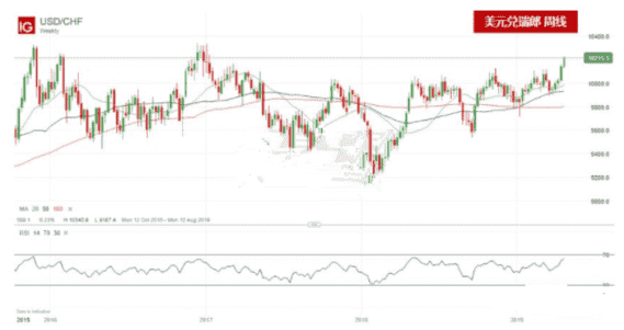 美元兑瑞郎接近周线前高 继续上行动能减弱