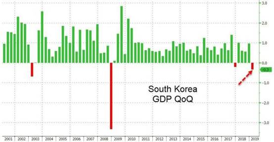 具体来看,韩国第一季度GDP环比下降0.3%,创2008年四季度以来最差表现,而此前经济学家预估为增长0.3%。韩国第一季度GDP同比增长1.8%,经济学家预估为增长2.4%,是2009年第三季度以来最慢同比增速,当时经济增速为同比增长0.9%。