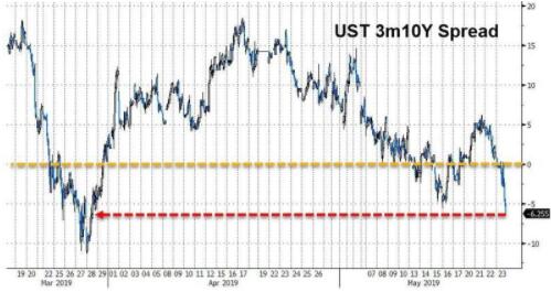 德银则在报告中详细描述了“收益率曲线”如何成为市场公认的经济周期指标,并指出如果2年和10年期国债收益率倒挂持续超过三个月,下一波经济衰退就可以说“实锤”了。