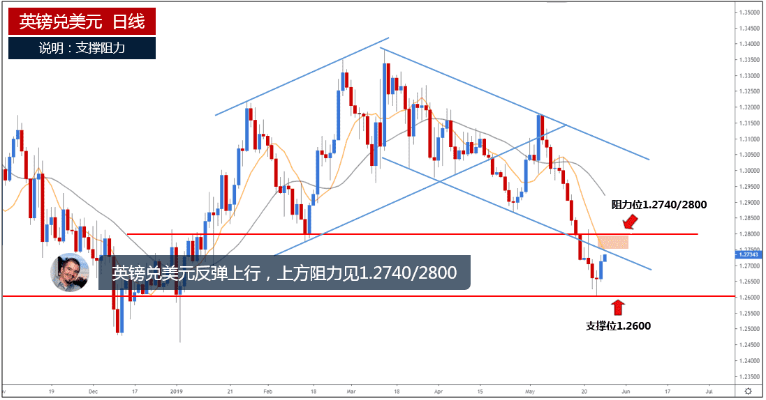 价格若是下行,下方支撑位见1.2600;价格若是上行,上方阻力位见1.2740/2800。