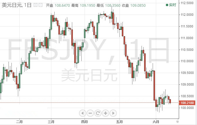 文章指出,日图显示,美元/日元昨日反弹受阻108.50回落,日内目前继续下行,短线有扩大下行测试108.00一线支撑的风险。