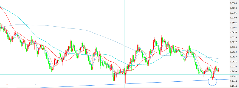 周线图上,价格在2016年10月至2018年12月31日的连线形成的上行趋势线支撑仍牢固,日线图上,多头似乎正在构建新的头肩底形态,预期仍需一些时间形成右肩低点的位置,而头部所在位置1.2504水平成为多头短期新的支撑。