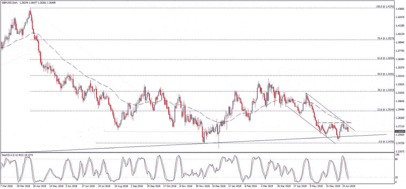 英镑/美元自昨日以来走低,并远离看空通道阻力,这支持了汇价触及我们等待的看空目标1.2565的可能性。假如跌破这一水平,这将推动汇价跌至下一目标1.2476。