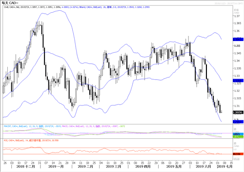 美元兑加元在周三日内再度走低,日低触及1.3064,距离此前录得的1.3060这一半年多低点只有一步之遥。虽然隔夜国际原油价格暴跌,但是对加元的影响却相对受限。近期加元走势受油价影响程度已经暂时降低,尤其是在油市走弱时仍能保持抗跌性能,原因在于汇价更多受到了美加两国的经济数据对比与央行政策前景带动。而近期加拿大经济数据明显好于美国,也令加拿大央行的政策立场相比美联储更加趋于鹰派,这足以令加元维持持续强势。日内数据进一步显示,加拿大6月贸易收支出现顺差,这和美国的巨额赤字构成了天壤之别,两相对比下加元更是进一步走强。此后,本周五的美加6月就业数据将继续引导此货币对的走向,一旦5月份美国就业疲弱而加拿大强劲的局面再现,美元兑加元可能难以再坚守1.30关口。中短线图上看,汇价远低于各短期均线之下,美元兑加元下行态势明显,操作上逢高空美元兑加元。