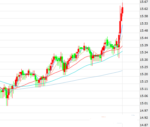 银价迎来大爆发:现货白银日内涨幅扩大至2%,刷新2月28日以来高位,最高触及15.686美元/盎司。