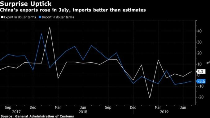 中国7月出口超预期增长,7月份中国外贸数据意外转好,与6月相比,出口转为增长,进口降幅收窄;贸易顺差同比也大幅扩大。