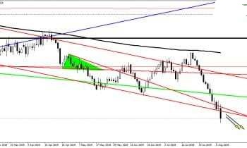 澳元/美元意外跌破看跌通道底部。这一突破暗示该货币对将延续跌势。不过,跌势可能会很快结束。目前,交易员可能想要继续监控汇价走势。
