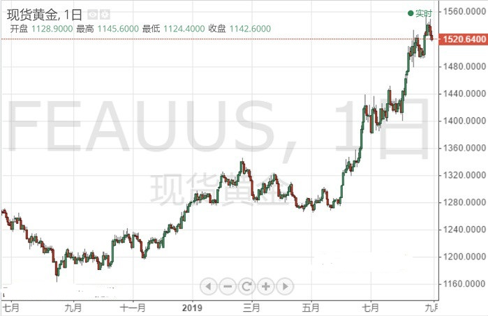 与此同时,本周国际现货黄金于周初冲高至1554.70美元/盎司的年内高点后震荡回撤,在周二小幅反弹收涨后连续3个交易日以阴线收跌,当周最低触及1516.78美元/盎司,周图也在此前连续4周上涨后首次收跌。