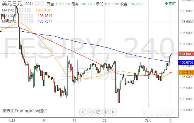 乐观的市场情绪帮助推动美元/日元一度触及107.22,为五周来最高水平。美国和中国将于10月初重启贸易谈判的消息,提振了市场人气。