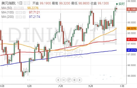 美元指数本周强势突破99大关,最高一度触及99.32,逼近年内高位。周五美元指数收盘位于99.13。