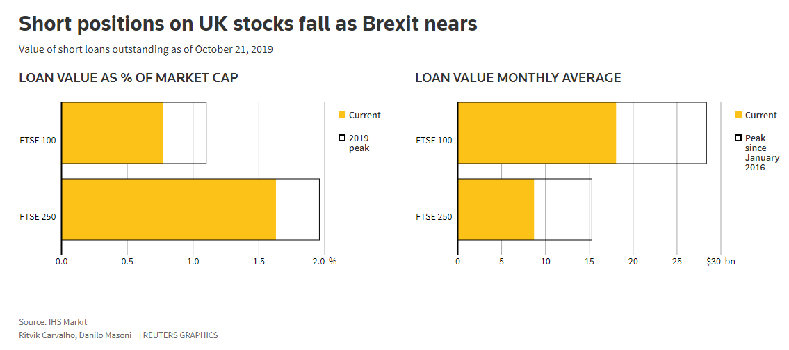 据路透社报道,尽管本月底英国退欧料将再次推迟,但投资人看来已有足够信心,开始轧平数以百亿计英镑空仓以及内需导向的英国个股。