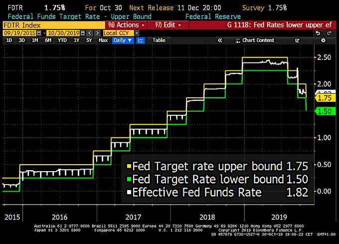 一如市场预期,美联储周三宣布下调联邦基金利率25个基点至1.50%-1.75%。这是今年以来美联储第三次降息,也是2008年12月以来美联储的第三次降息。
