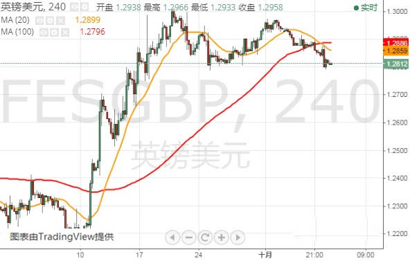 从技术面来看,英镑/美元已经自上述低点反弹,目前交投在10月升势的23.6%回撤位(1.2820)附近,短期前景呈中性至看涨立场。