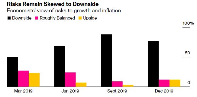 尽管存在这种乐观情绪,但绝大多数受访者表示,经济增长和通胀的风险仍然偏向下行。他们还指出国际贸易争端是2020年对美国经济的最大威胁,其次是全球增长放缓。