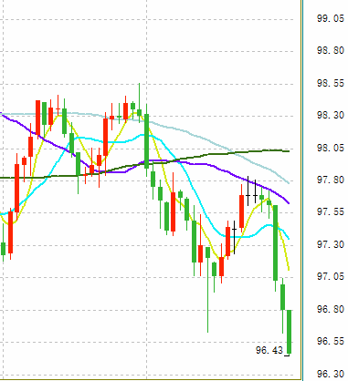 美元持续大跌,最低96.45,刷新半年以来的最低水平。技术面来看,目前布林带由紧缩转向扩张,这是跌势将扩大的特征。若符合预期,短线初步支撑关注96.50,有效下破将打开指向96.00的空间。