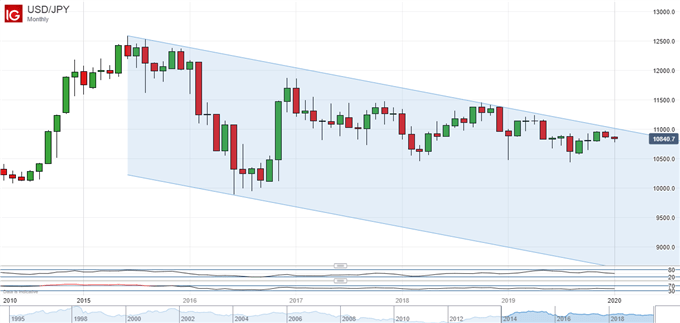 进入2020年新的交易年,市场将对该下行通道的命运持有浓厚的兴趣,但伊朗问题继续充斥市场头条的背景下,美元/日元取得突破的可能性似乎并不大。