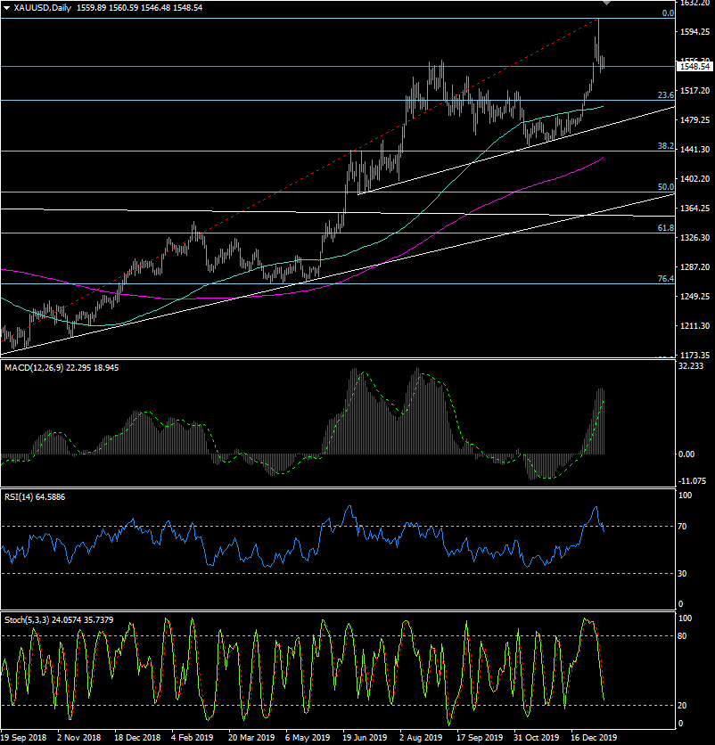 在1560美元/盎司做空,止损位设在1575美元/盎司,获利了结点设在1525美元/盎司