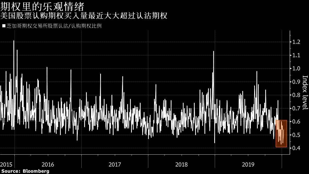 Sundial Capital Research分析师在最近几天则发出了另一个警告信号:本月在美国市场,认购期权受追捧程度远超认沽期权。“按成交占比看,上周投机性认购期权的买入达到过去20年来从未见过的水平,保护性策略的交易量完全不能比,”Sundial总裁Jason Goepfert表示。“极端总是会变得更加极端;这不是好事。”
