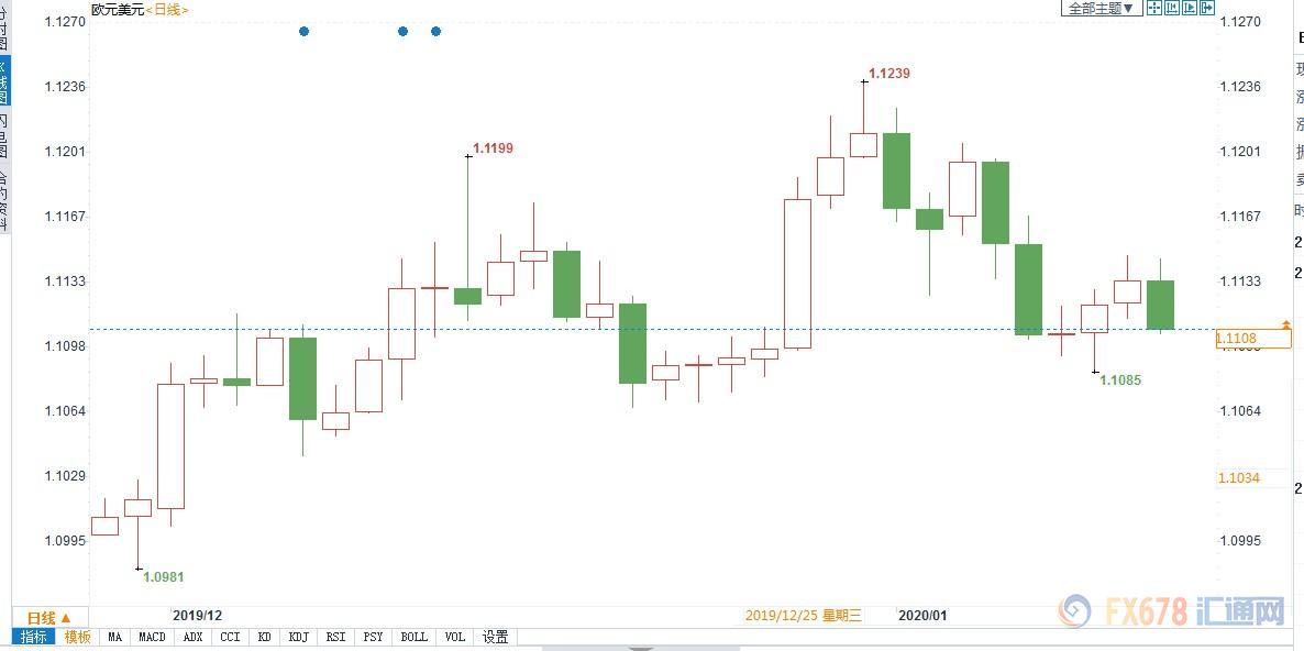 北京时间1月14日 21:42,欧元兑美元现报1.1109