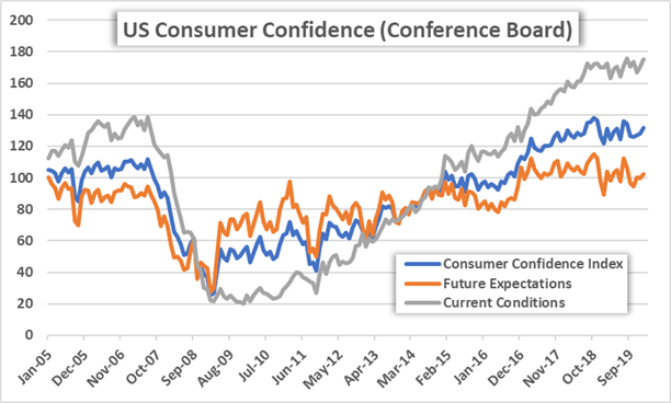尽管如此,若日内消费者信心报告表现差于预期仍可能会加剧美元近期抛售压力。这是因为消费者信心恶化可能鼓励美联储放弃此前1月会议所传递出来的中性货币政策立场。若消费者信心显露出实质性下降迹象,美联储可能会屈服于当前的市场降息预期——可能作为对抗冠状病毒爆发带来的下行风险的一种保险措施——而不是维持利率不变。