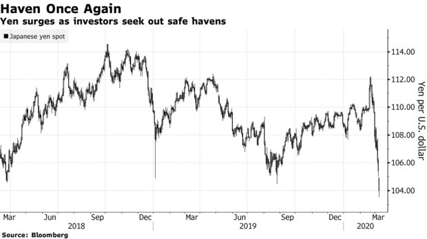 分析师认为,美元兑日元周一暴跌近4%,至2016年以来低点101.57后,日本当局不会袖手旁观。油价的崩盘令本就在艰难应对新冠疫情影响的外汇和债券市场再遭重创。