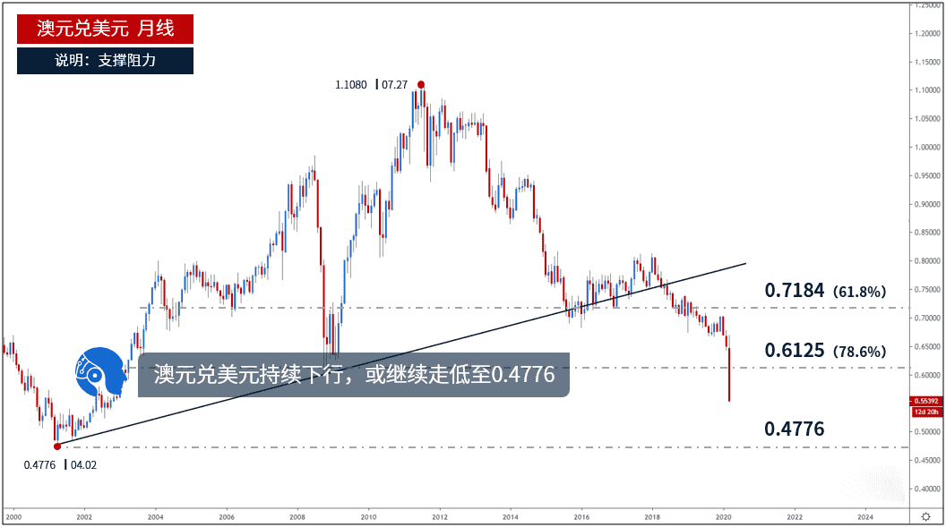 在周三重挫约3.8%后,澳元兑美元周四进一步下行,大跌4.6%,刷新2002年以来低点至0.5510。