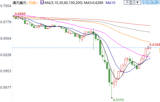 欧洲时段,澳元兑美元创一个月新高至0.6374,目前暂获六连涨,日内美元指数有所回落,油市尽管达成减产协议,但油价依旧回吐涨幅,大宗商品承压依旧,澳元因此涨幅也受限,后市继续聚焦大宗商品走势及明日的中国数据。