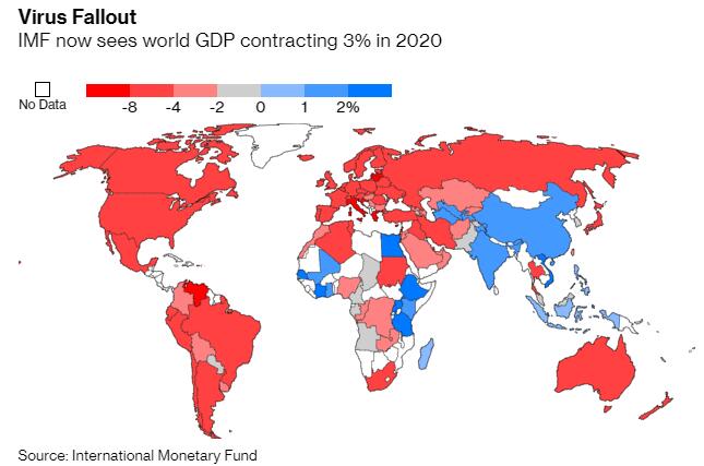 周二国际货币基金组织(IMF)发布新一期《世界经济展望报告》,该组织预计今年全球经济将萎缩3%,为上世纪30年代大萧条以来最糟经济衰退。IMF警告称,如果冠状病毒疫情持续存在或卷土重来,全球经济的萎缩和复苏将比预期的更糟糕。